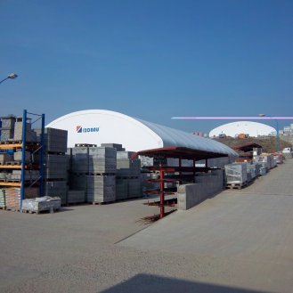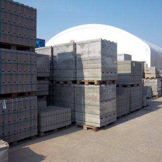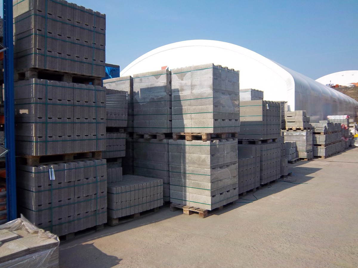 betonové dlažby velkoplošné, vymývané i zámkové, obrubníky (zahradní, chodníkové, silniční betonové ploty, zdící tvárnice( štípané, vymývané, lité), ztracené bednění, svahové tvárnice betonové palisády, schody, skruže, poklopy, překlady RZP, desky PZD