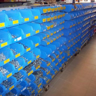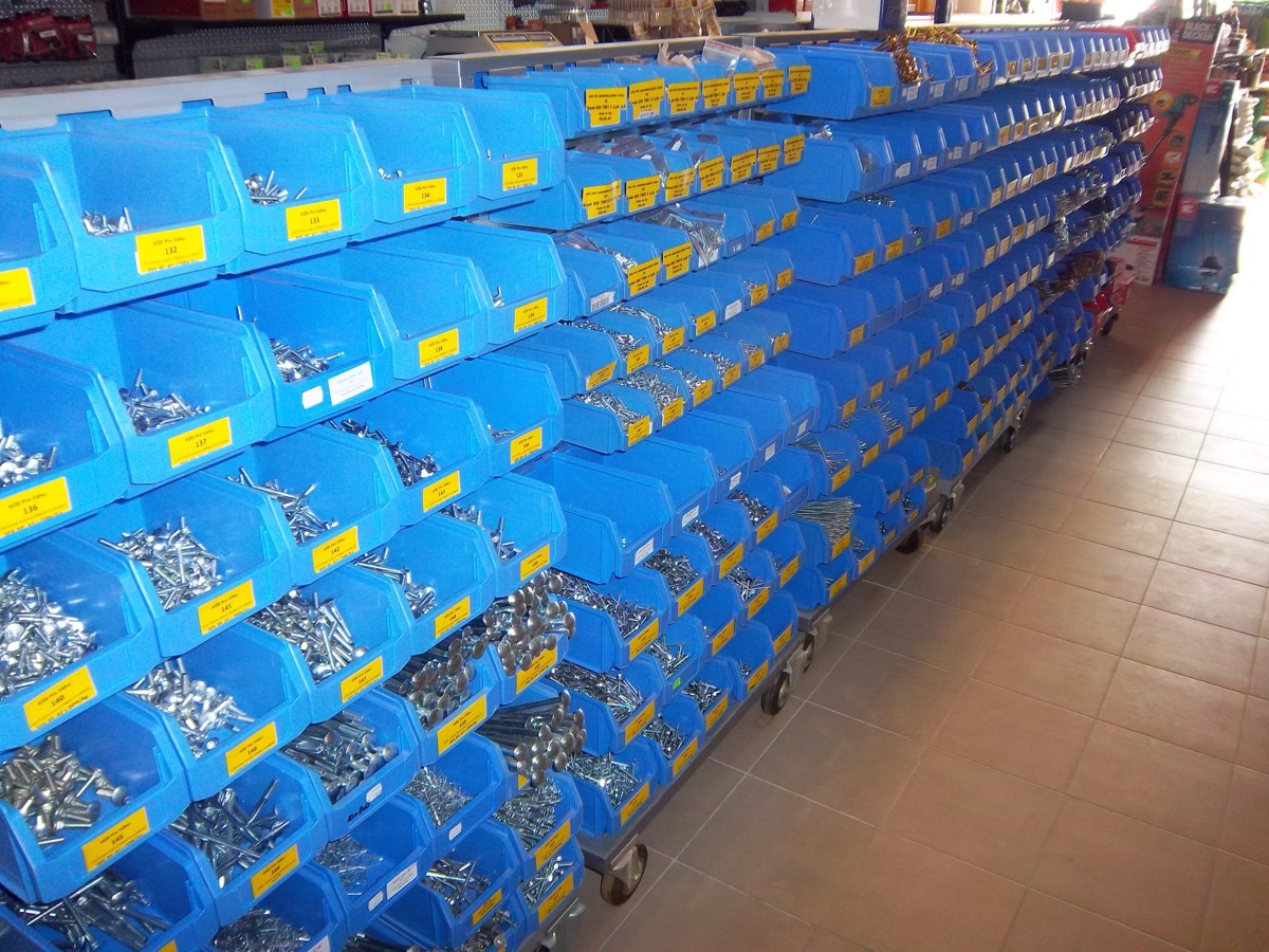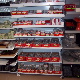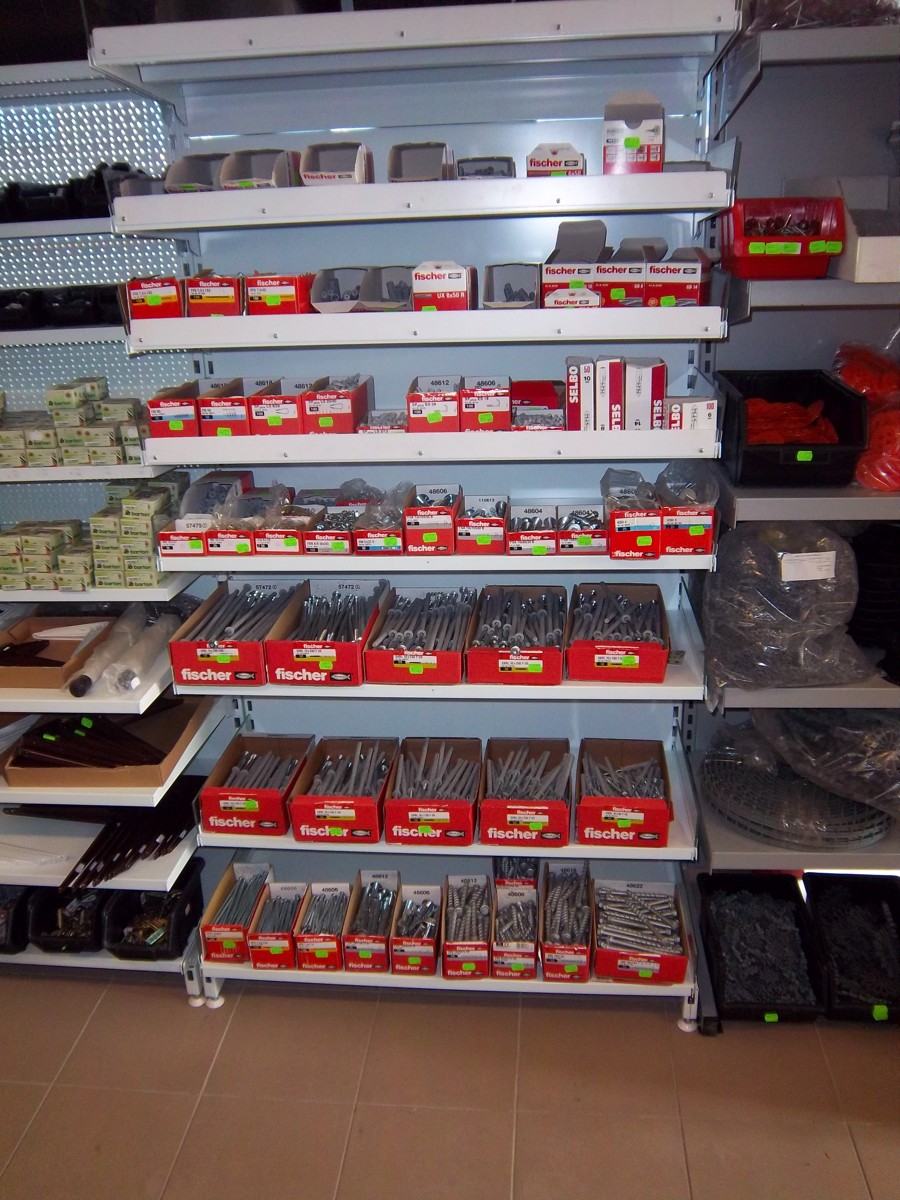 šrouby, hřebíky, vruty, závitové tyče, nýty, hmoždinky, matice, podložky, tesařské kování, styčníkové desky, oka, háky, skoby, kramle, chemické kotvy, řetězy, ocelová lany , lana, elektrody, pásoviny, L a U profily, profily Jakl, KARI sítě, tyčová výztuž, vázací drát