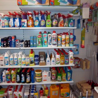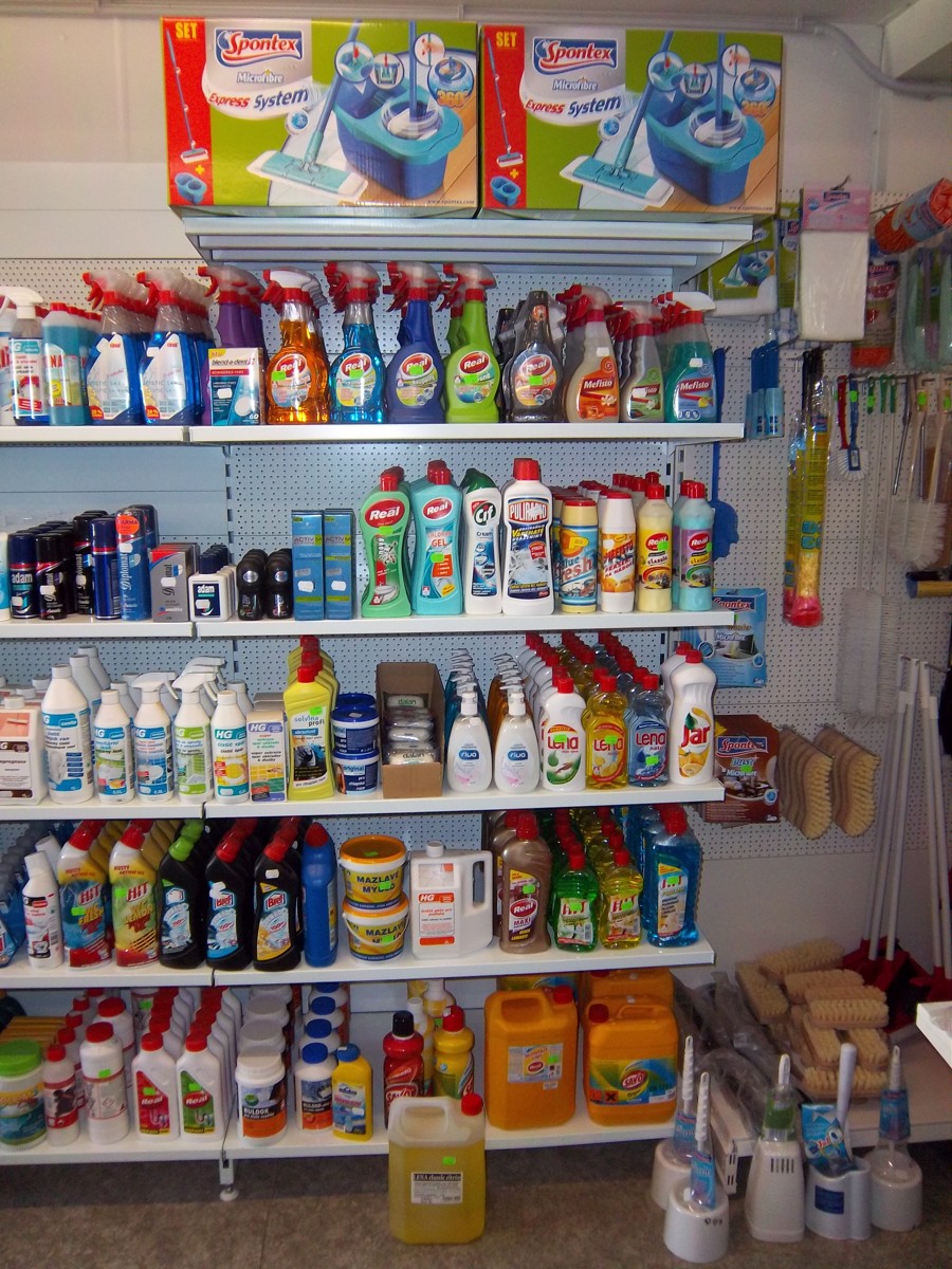 kompletní program smetáků, mopů, utěrek SPONTEX, čistící prostředky na okna, podlahu, WC, kyseliny, leštěnky...